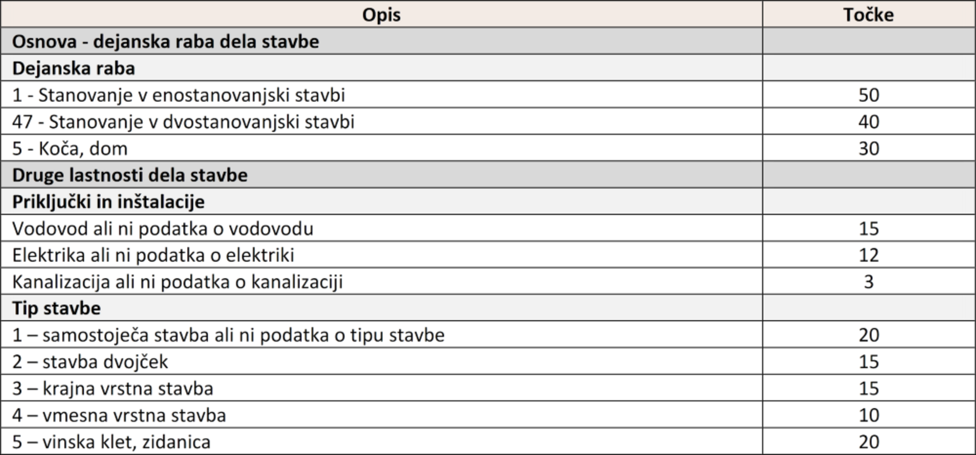 - s poskusno izračunanimi vrednostmi vseh nepremičnin na podlagi novih modelov.